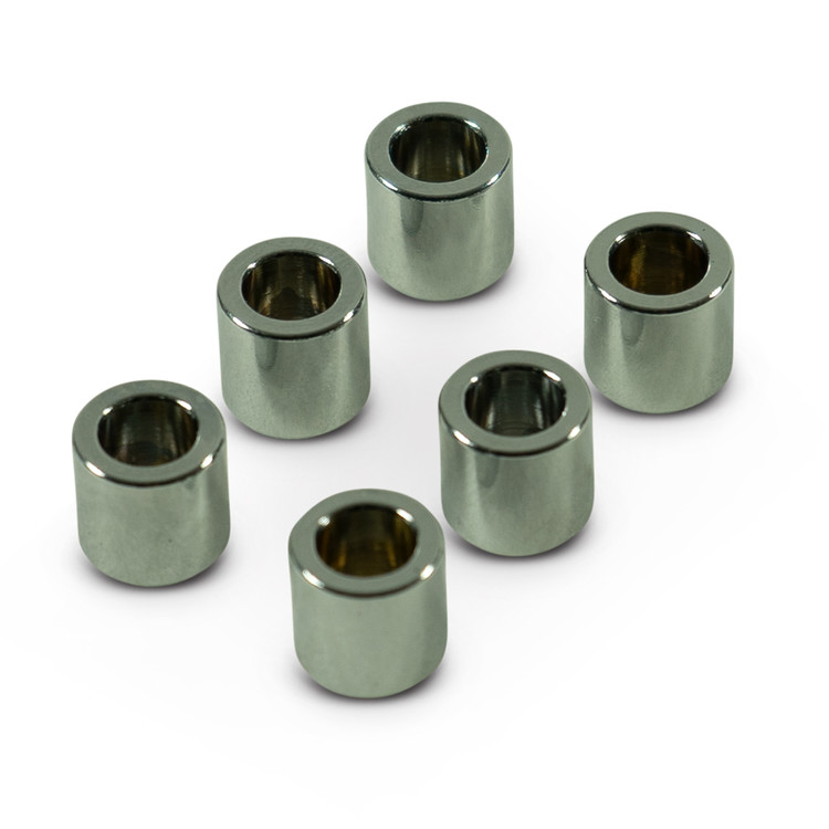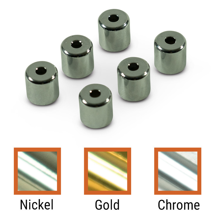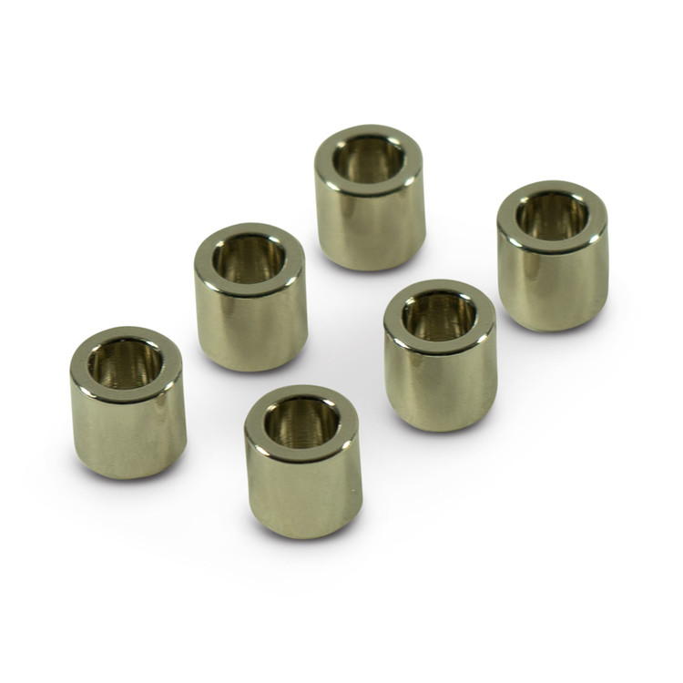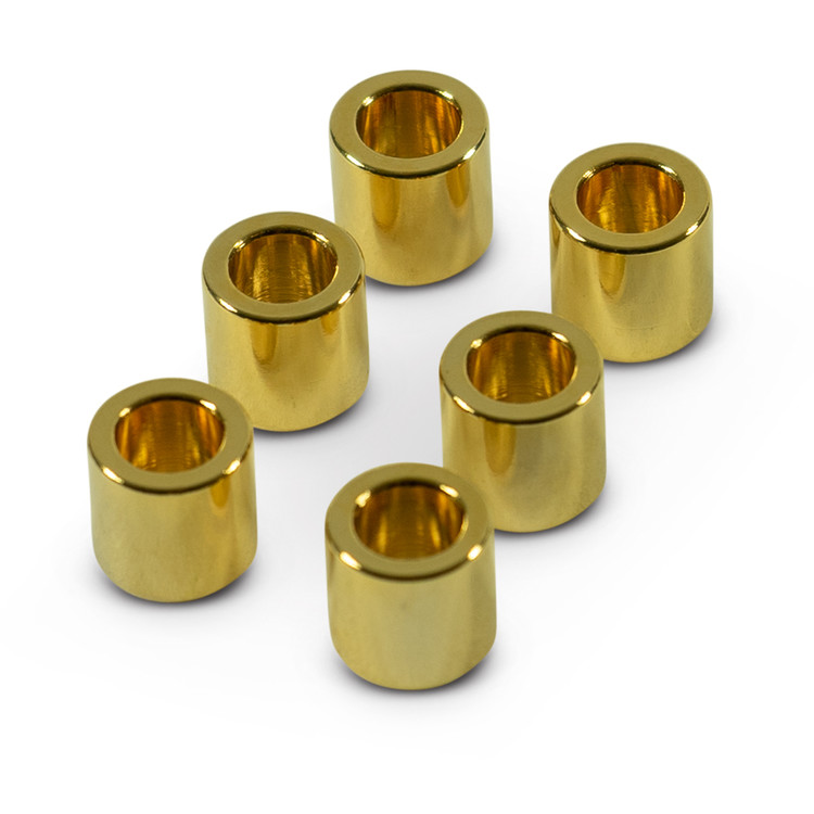 These Kluson® brass body ferrules are designed to be mounted flush with the surface of the finished body with no lip giving you an even smooth appearance in the back of the body while securely holding the string ball in place. The outside is smooth and not knurled. Not a drop in replacement for Fender® string ferrules.