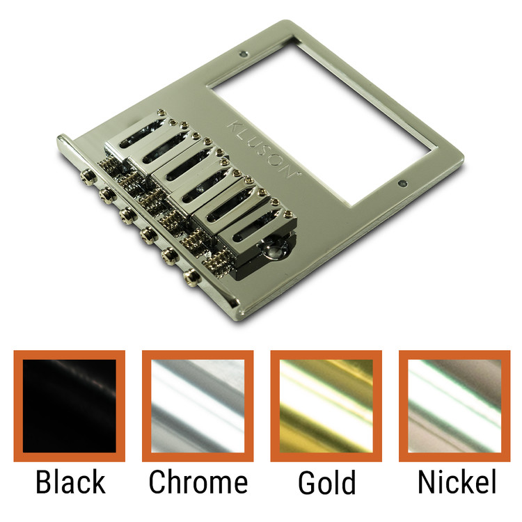 Kluson®'s Contemporary Humbucker Tele bridge drops right on to any traditional vintage spec Telecaster converting it to use a humbucker pickup in the bridge position. The baseplate is made from brass and features 6 adjustable brass saddles feature optimum intonation. Available in Chrome, Nickel, Gold and Black plating with plated brass saddles to match.
