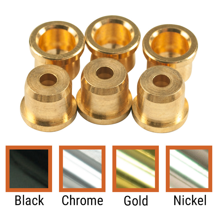 This string ferrule set is an exact replacement for original Fender® Telecaster® string ferrules, or Fender® part number 001-8876-049. Complete 6 piece set available in Black, Chrome, Gold, or Nickel finishes.