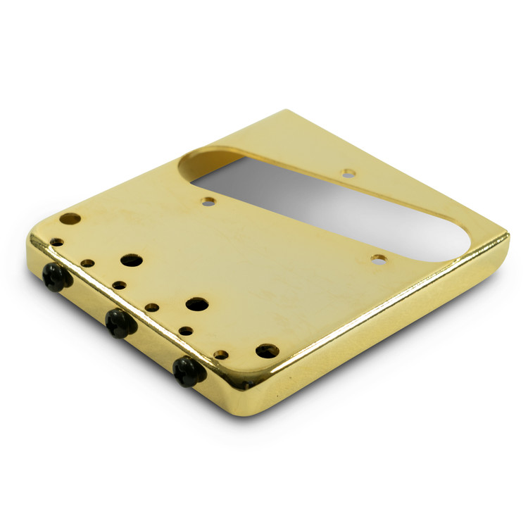 Vintage bridge specifications for traditional Fender® Telecaster® single coil bridge pickup. This superior quality bridge includes a stamped steel baseplate with brass intonated saddles. These bridges also share the original string thru and mounting screw locations for the Fender® vintage Telecaster®, Broadcaster® and No Caster® made in the USA through the 1950’s thru to current production that uses vintage specs. These bridges will NOT fit Fender® American Standard® guitars which use the block saddles and mount with three screws.