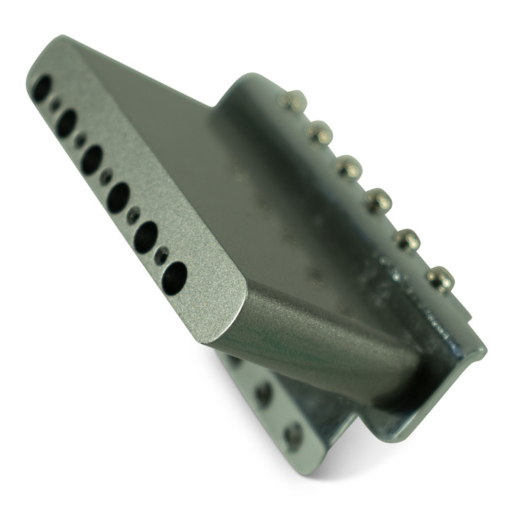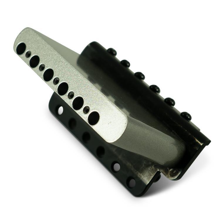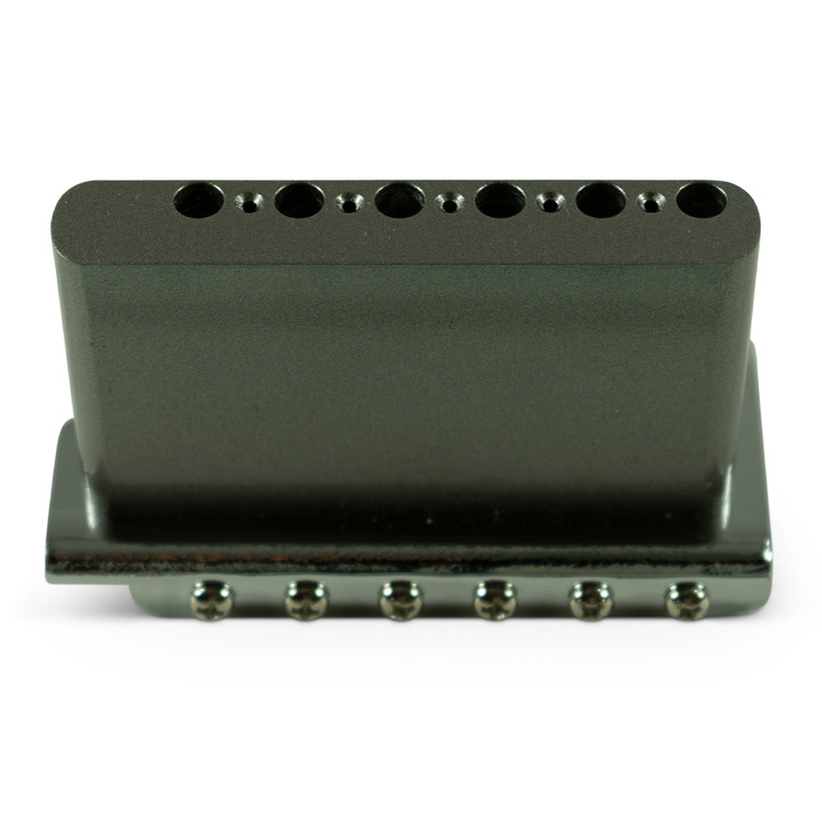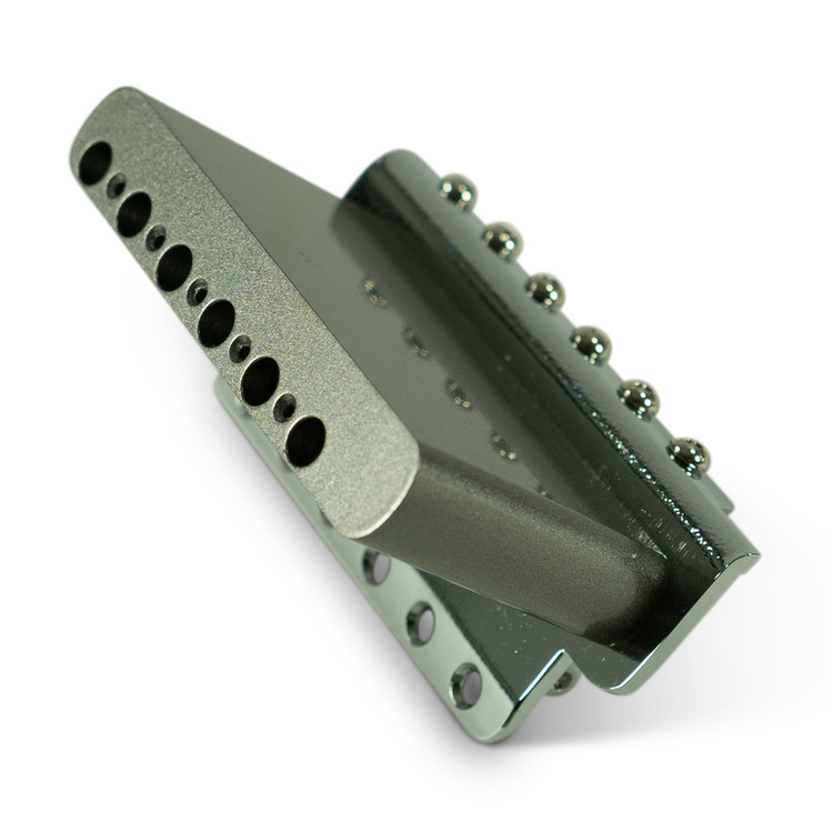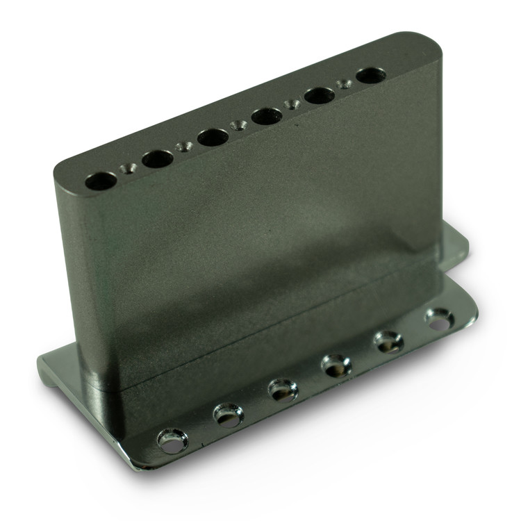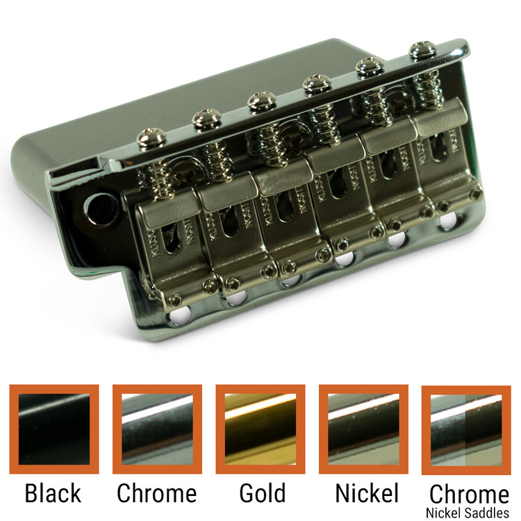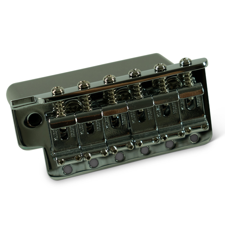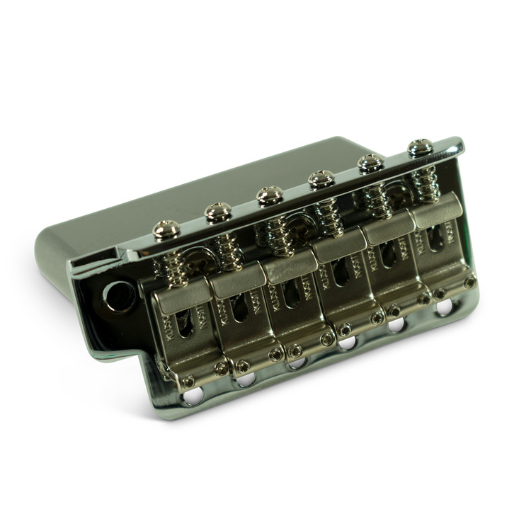 This new version of the Kluson® Vintage Steel Block Tremolo Bridge is a beautiful replica of the traditional vintage tremolo, but with a modern twist. Kluson® has modernized the bridge by incorporating a contemporary 10.8 mm string spacing while still using the original 2 7/32 inch 6-screw mounting hole pattern. This direct replacement for vintage Fender® tremolos requires no additional modification to install and easily converts “wide-spaced†(11.3 mm) vintage guitars to contemporary “narrow†(10.8 mm) string spacing. The tremolo bridge kit includes new Kluson® embossed stamped steel saddles plated to match the bridge, a machined solid steel sustain block, all mounting hardware, tremolo arm with tip, mounting screws, claw and springs.