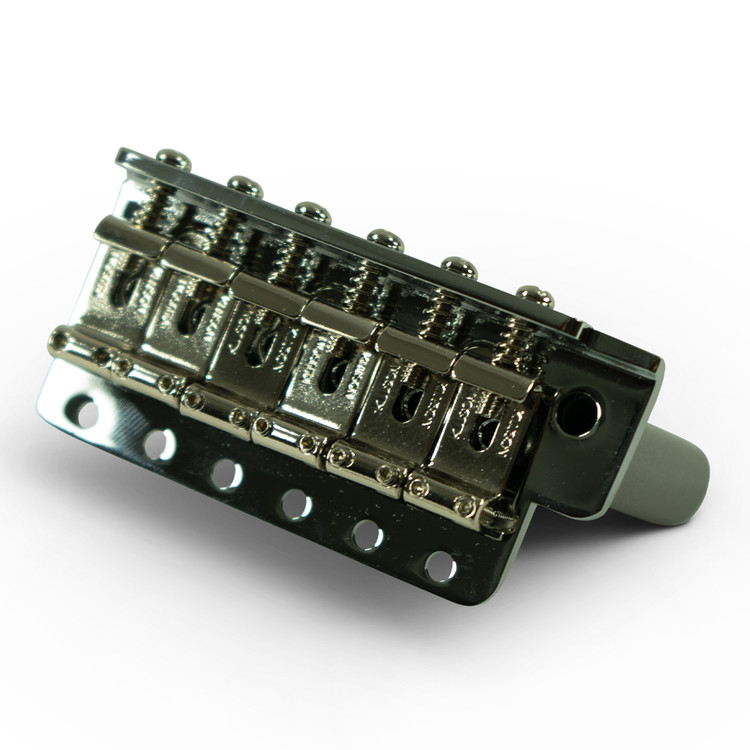 This is a beautiful replica of the traditional vintage tremolo. It features vintage 11.3mm spacing, Kluson® embossed stamped steel saddles, and a machined solid steel sustain block. Comes complete with arm, screws, claw and springs. We also offer optional aluminum and brass sustain blocks sold separately. This is a direct replacement for Fender® part # 099-2049-002 in different plating/finishes.