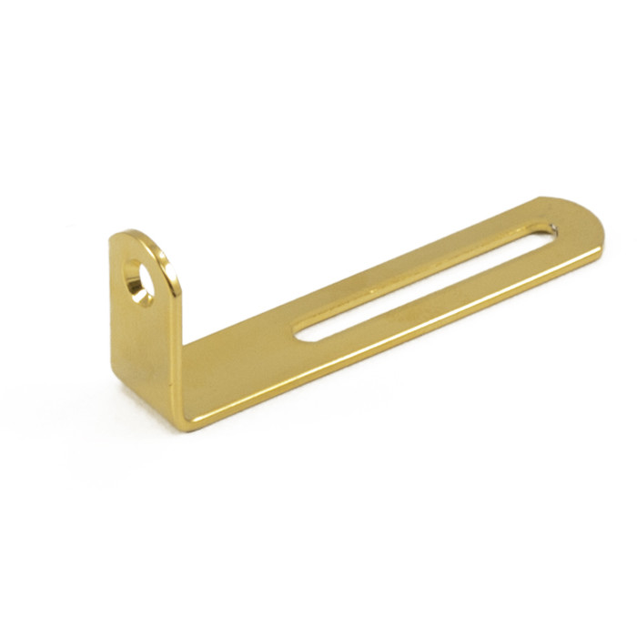 This new Kluson USAâ„¢ pickguard mounting bracket is a direct replacement for contemporary Gibson® Les Paul® guitars. It is USA made component with high quality plating to the standards you would expect for your guitar. Slight differences include the adjustment slot having rounded ends instead of the original square cut slot and a slight difference in width from the historic version.