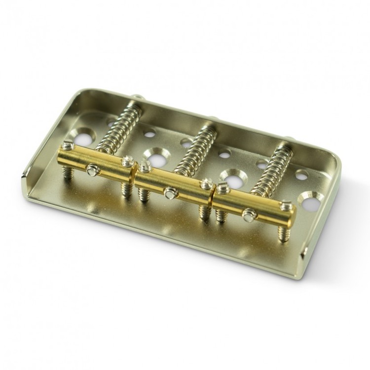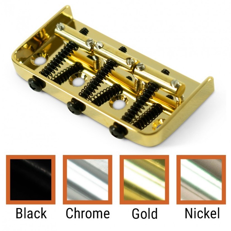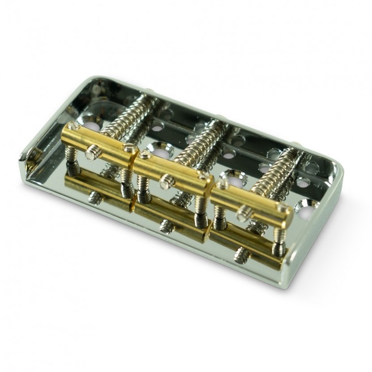Half sized bridge for Fender® Telecaster® typically used for mounting an alternative bridge pickup. This superior quality bridge includes a stamped steel baseplate with brass saddles. These bridges also share the original string thru and mounting screw locations for the Fender® vintage Telecaster®, Broadcaster® and No Caster® made in the USA through the 1950’s thru to current production that uses vintage specs. These bridges will NOT fit Fender® American Standard® guitars which use the block saddles and mount with three screws.